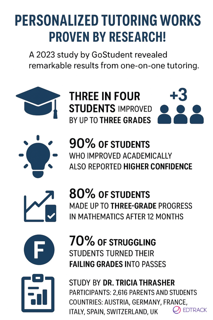 A 2023 study by GoStudent found that three in four students improved by up to three grades with personalized tutoring, and 90% reported higher confidence as their academic results improved.